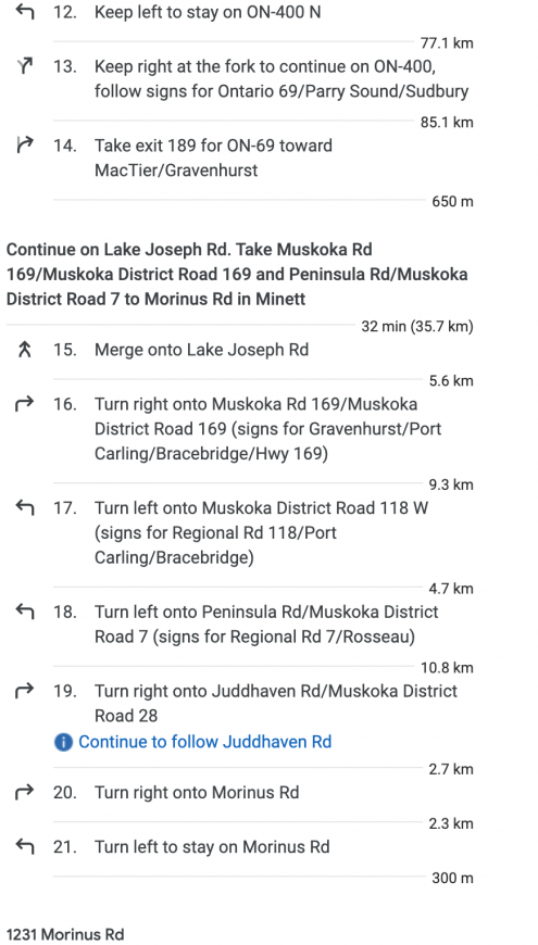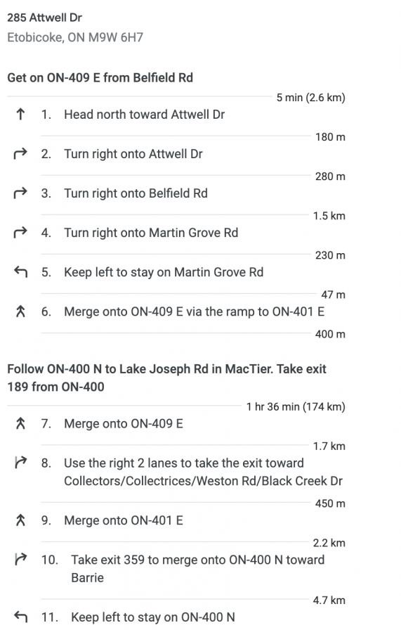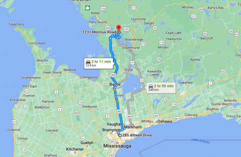 Here are the directions from Malton SDA Church 285 Attwell Drive, Etobicoke Ontario to Camp Frenda - 1231 Morinus Road, Minett Ontario